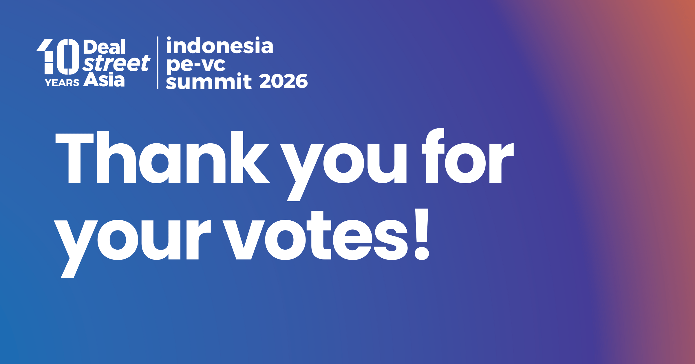 Thank you for upvoting the three top themes and trends that are defining Indonesia’s private markets story. Through fireside chats and panel discussions with the region’s top investors, founders, and deal-makers, we will bring these topics to life.