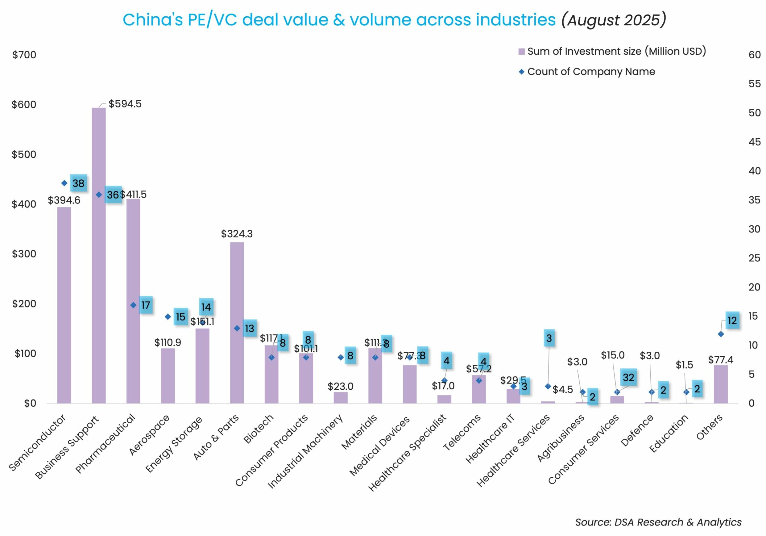 Sectorally speaking, business support services have overtaken semiconductor as the most-invested sector by value, largely thanks to the busy dealmaking scene for AI and robotics startups serving businesses.