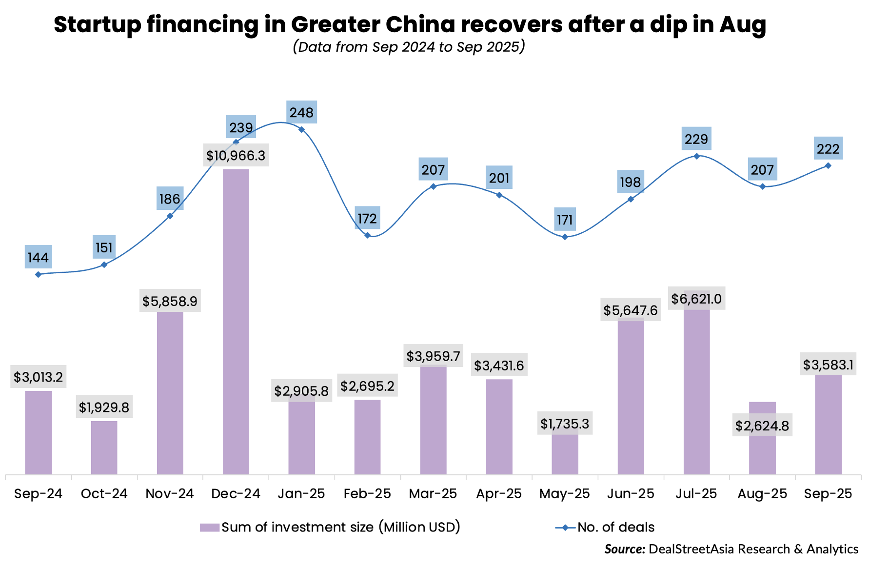 In September 2024, just over $3 billion was raised across 144 investments in Greater China-based startups.