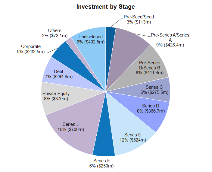 Growth-stage deals accounted for bulk deal value. Companies in Series B or post-Series B rounds collected an aggregate of $2.5 billion across 29 transactions in January as against $3.72 billion across 40 transactions in December.