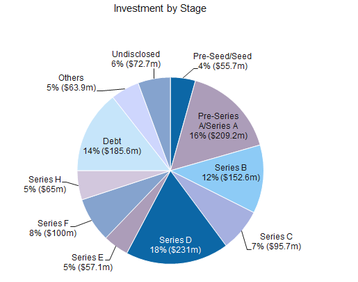 Startups at pre-Series A and Series A stages secured a total of $209 million across 30 transactions, registering a growth of about 20% in deal value over October. HR tech startup Keka raised the largest Series A round of $57 million from WestBridge Capital. Other startups that raised Series A rounds in the month include Indiagold ($22 million), The Ayurveda Co. ($15 million), Prismforce ($13.6 million), SolarSquare ($12 million), Supertails ($10 million) and ProcMart ($10 million).