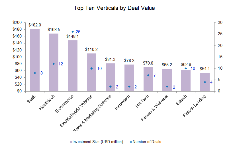 Healthcare specialist industry was pushed to the third spot with Global Dental Services’ $66-million round. The company, which operates the nationwide chain of oral care clinics Clove Dental, raised this amount from Investcorp, Tybourne Capital Management, SeaLink Capital Partners, and others.