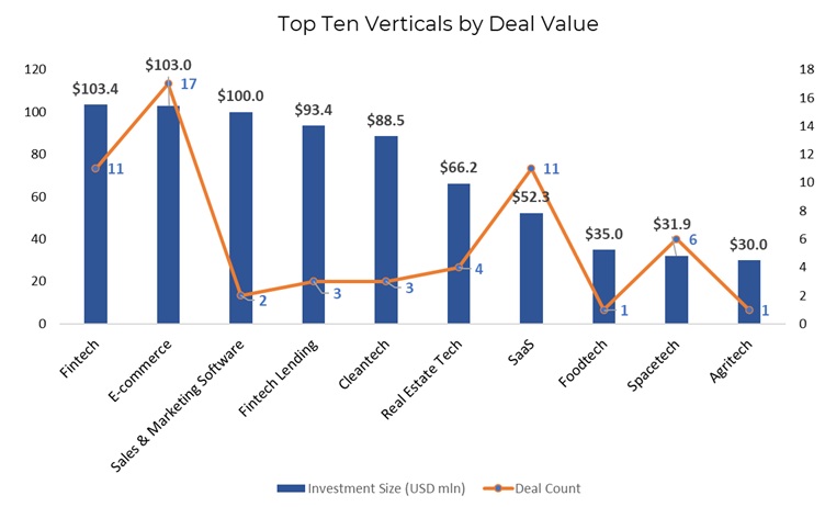 Logistics and distribution industry made it to the third place with $74.6 million in funding across four deals, including Ripplr ($45 million), Pidge ($13.6 million), Agraga ($12 million), and Stackbox ($4 million).