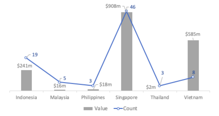 While startups in Singapore continued to corner the biggest chunk of funding at $908 million, Vietnam overtook Indonesia for the first time in terms of deal value last month thereby amassing a total of $585.2 million.