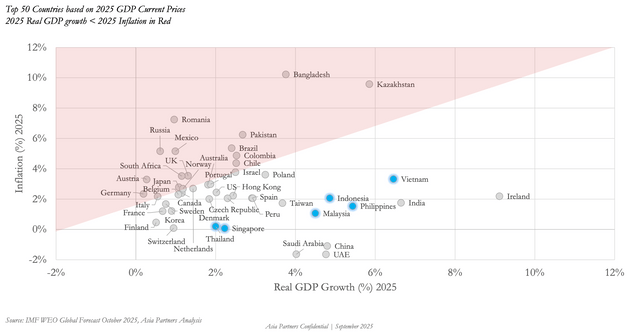 Speaking at DealStreetAsia’s Indonesia PE-VC Summit 2026, Nash said a growth-versus-inflation framework shows most of Southeast Asia sitting in what he described as a “very benign category” compared with many major economies.